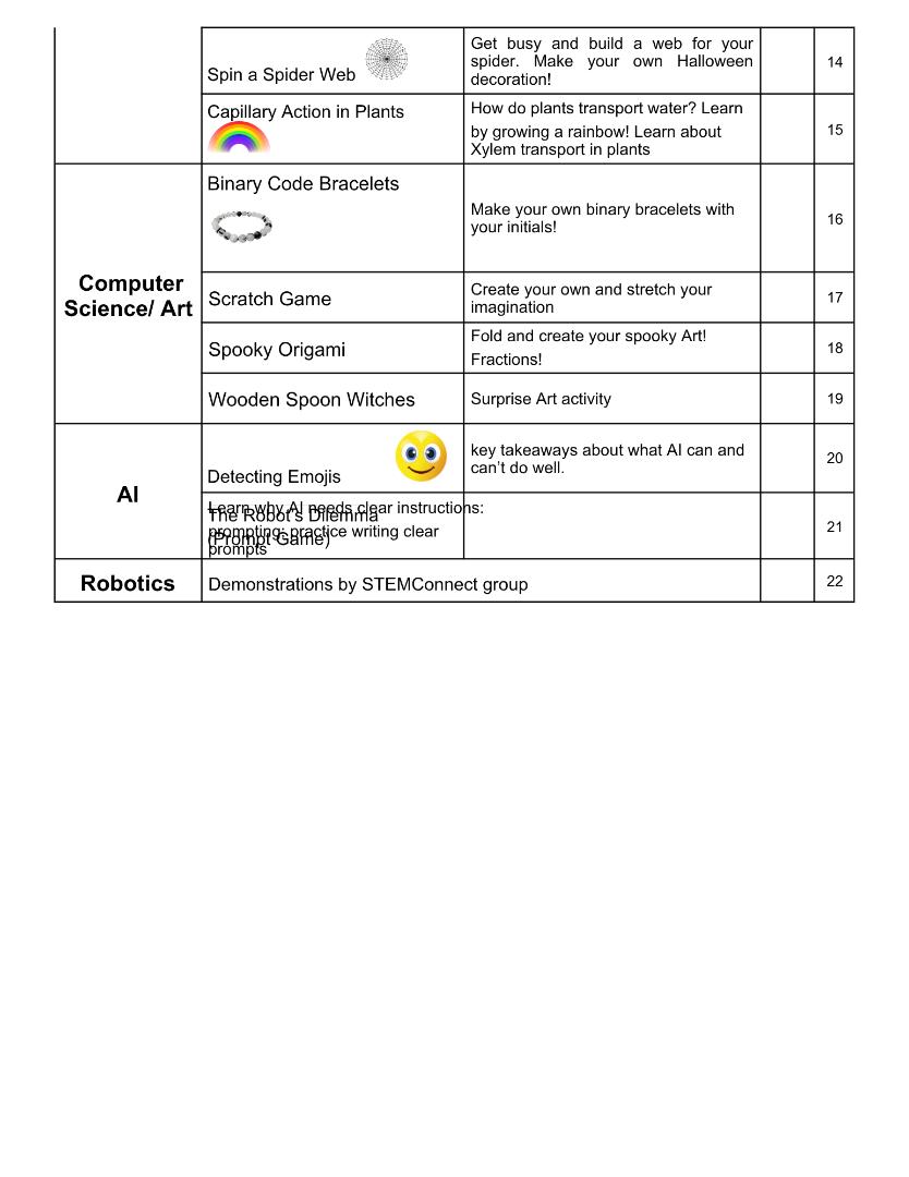 Activities at STEAM Night 10/16: