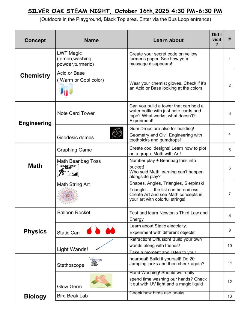 Silver Oak PTO appreciates your continued support of our programs! We hope you and your children had a fantastic time exploring all the activities.
